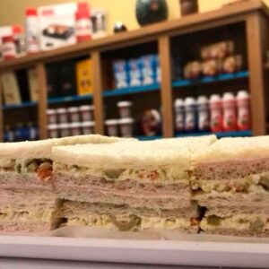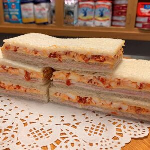 Sandwich de Miga Morrón, Jamón, Huevo y Aceituna
